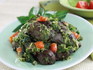 - Lumuri hati ayam dengan bumbu halus hingga rata.